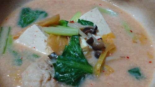 豆乳を使いきろうと頑張ってます。 昨夜は鶏だんご、お豆腐、しめじ、小松菜、キムチ入りスープ。 一昨日の夜はサバ缶とキムチの煮物風。 豆乳だけじゃなくて、キムチも使いきろうと思ってます。 それにしても写真があまりにも良くないな~~。