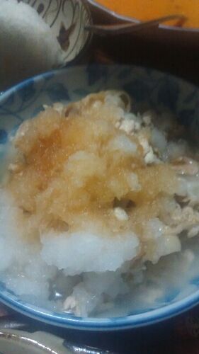 夜ご飯。 塩ゆでしておいておいた豚肉を温ためて、大根おろしをのせ、ポン酢かけ~。 あまり美味しくなかったけど…おかずのひとつとして。 あとはごはん、お味噌汁、焼き魚、牛すねトマトスープ煮?。 『相棒』観ながら食べました *** お昼ご飯。 ごはん、お…